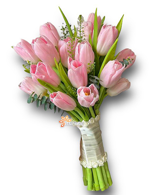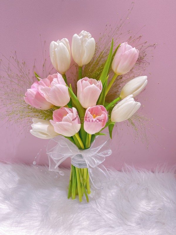 Đặc biệt, hoa Tulip không chỉ đẹp mà còn mang nhiều ý nghĩa sâu sắc. Trong tình yêu đôi lứa, chúng là biểu tượng của tình yêu hoàn hảo, thể hiện sự gắn kết và lòng trung thành. Một bó hoa cầm tay Tulip hồng mix trắng sẽ mang đến cho cô dâu một vẻ đẹp ngọt ngào, thuần khiết, đồng thời cũng là một lời chúc phúc thật chân thành trong ngày trọng đại này.