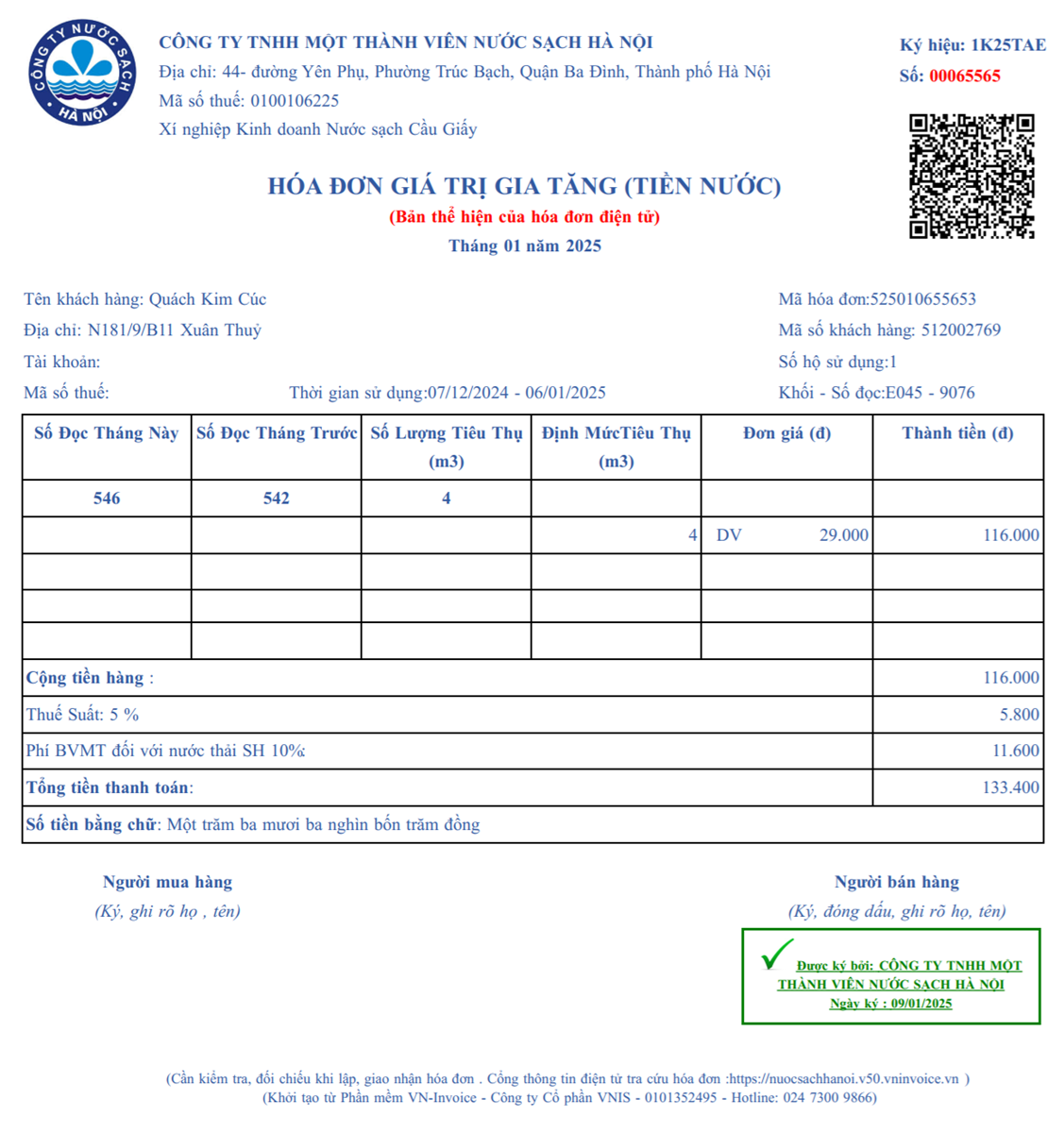 Chi tiết hóa đơn sẽ hiện ra và bạn có thể chuyển khoản ngay lập tức. Việc thanh toán hóa đơn điện tử ngày nay trở nên đơn giản hơn bao giờ hết, giúp tiết kiệm thời gian và công sức cho người sử dụng. Chúc bạn luôn có những trải nghiệm tốt nhất với dịch vụ nước của công ty!
