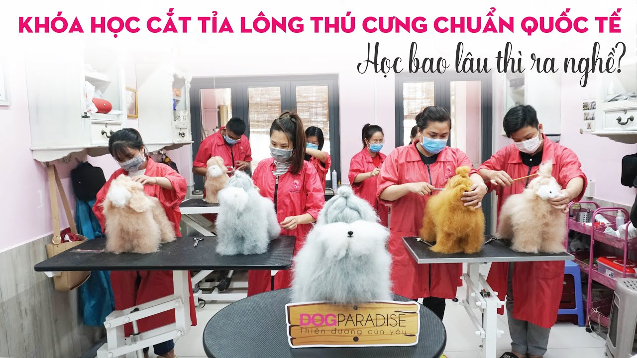DogParadise cũng siêu uy tín, hơn 10 năm kinh nghiệm, hướng dẫn tận tình từ chuyên gia trong-ngoài nước. Khóa học kéo dài với 7 buổi vệ sinh và 55 buổi thẩm mỹ, nhuộm lông, giúp bạn thành groomer pro chỉ sau thời gian ngắn.