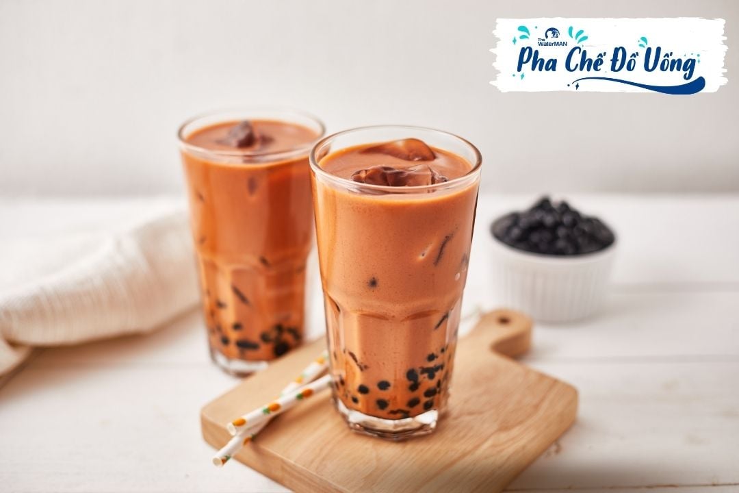 Tiếp theo, để làm trà sữa, bạn cho vào nước cốt trà 20 gram đường nâu, 150ml sữa đặc và 250g bột sữa Thái. Trộn đều cho đến khi mọi nguyên liệu hòa quyện với nhau. Đừng quên đun sôi trân châu theo hướng dẫn, sau đó ngâm trong siro đường để trân châu thêm ngọt ngào.