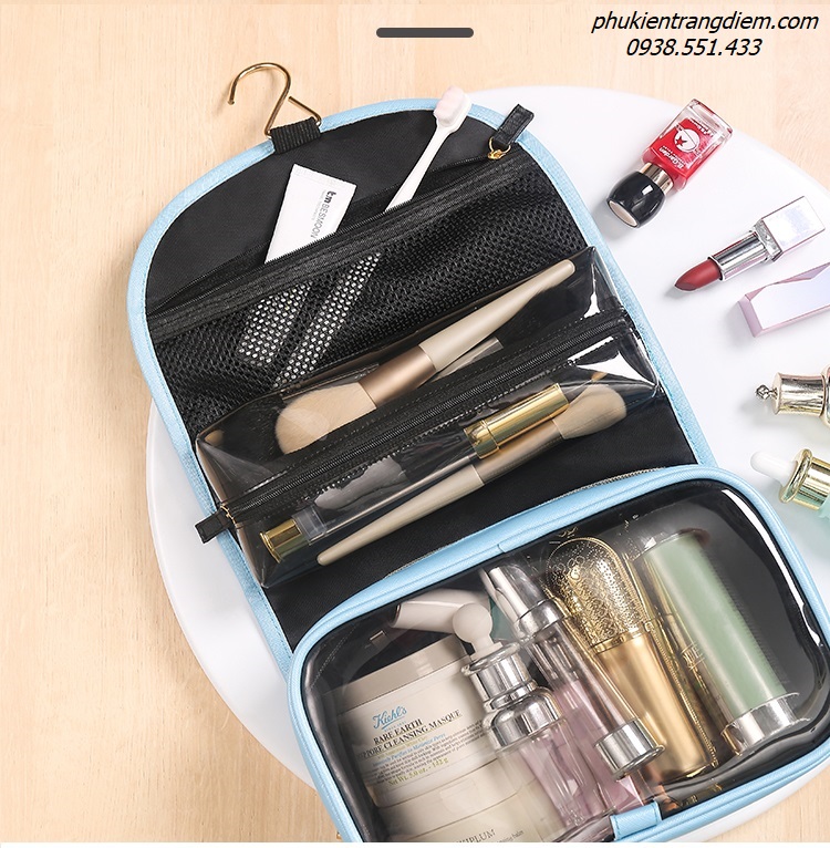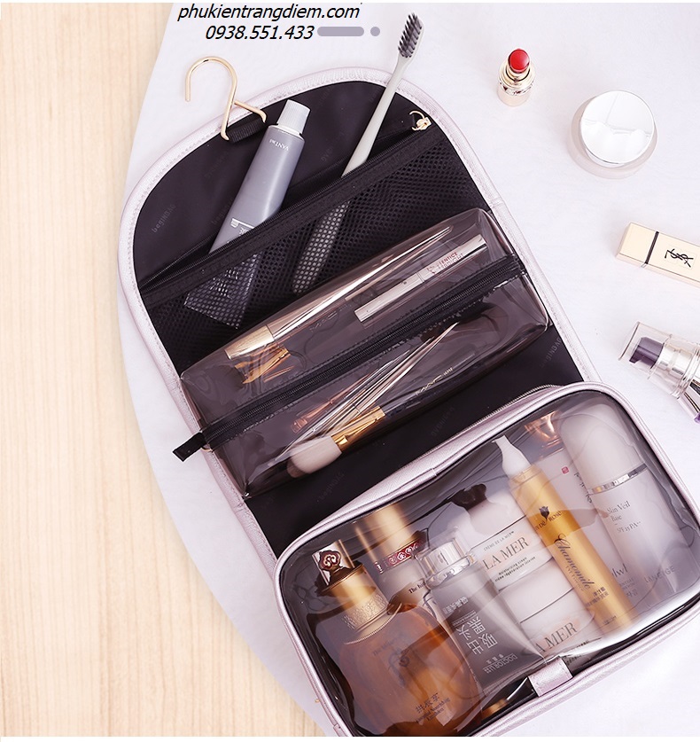 Một mẫu điển hình là cốp túi trang điểm được làm từ vải polyester kết hợp với 4 túi PVC trong suốt, vừa bền đẹp lại vừa chống thấm nước. Nhờ đó, bạn có thể yên tâm mang theo gel, kem hay bất kỳ sản phẩm nào mà không lo bị đổ tràn. Đặc biệt, chỉ với 275.000₫, bạn đã có thể sở hữu một chiếc túi mỹ phẩm du lịch với nhiều màu sắc và thiết kế phong phú.