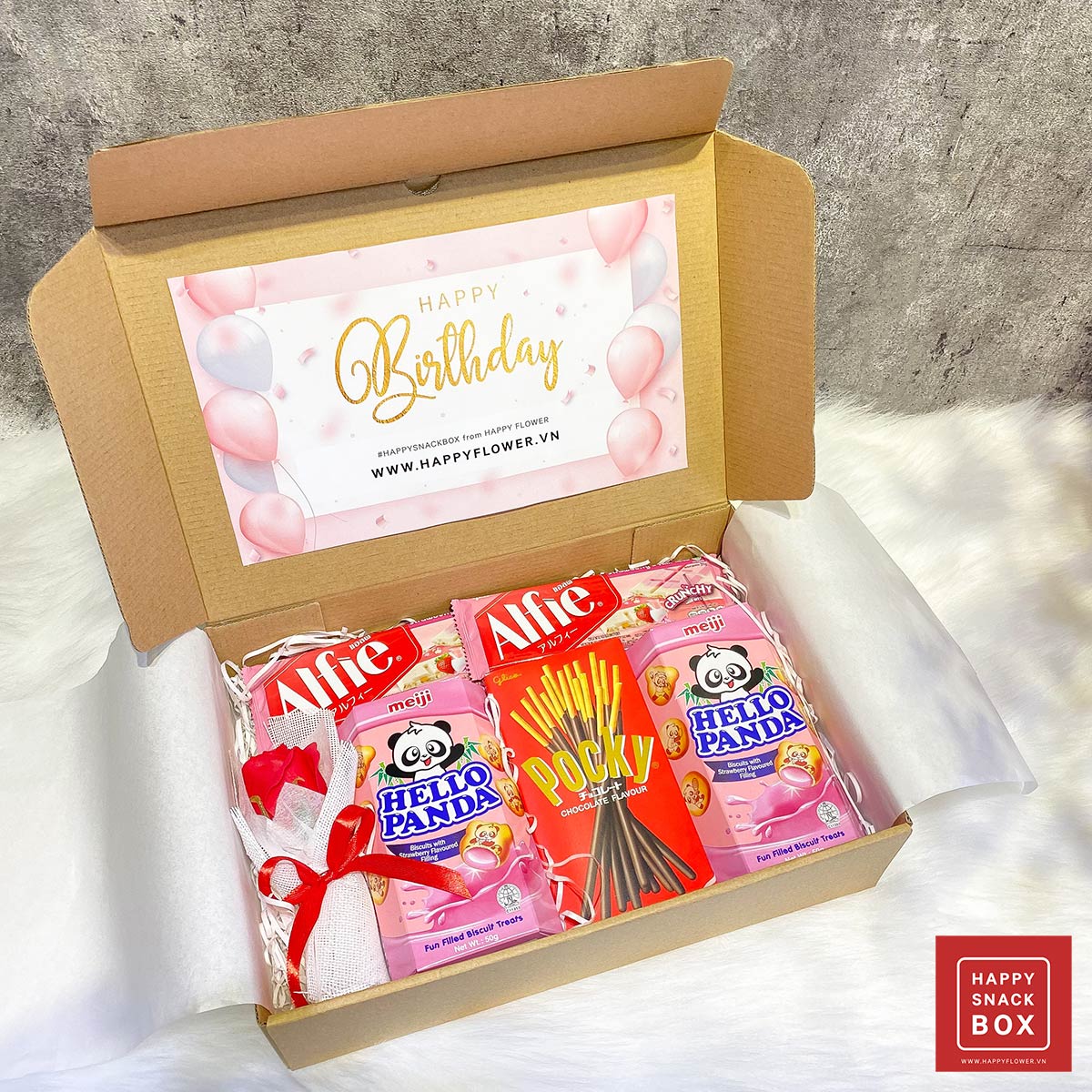 Hộp bánh kẹo được thiết kế đẹp mắt với các món ăn yêu thích như socola viên đắng, kẹo dẻo trái cây và bánh quy bơ, mang đến cảm giác ngọt ngào, thú vị cho người nhận. Đặc biệt, các sản phẩm đều có nguồn gốc xuất xứ rõ ràng, đảm bảo an toàn cho sức khỏe. Những set quà này sẽ làm cho ngày sinh nhật càng thêm đặc biệt.