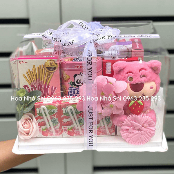 Một món quà ý nghĩa cho người yêu trong dịp sinh nhật hay kỷ niệm không thể thiếu Hộp Quà Bánh Kẹo Mica Trong Suốt. Với thiết kế tinh tế, hộp quà này không chỉ mang lại sự bất ngờ mà còn thể hiện tình cảm chân thành của bạn. Bên trong hộp là những món bánh kẹo quen thuộc như Pocky, socola SilverQueen và khoai tây chiên Lay’s, chắc chắn sẽ làm hài lòng bất kỳ ai.
