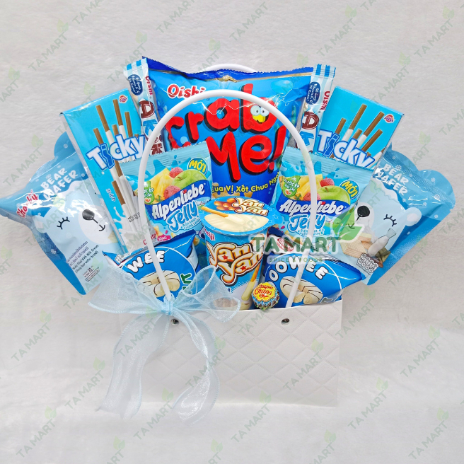 Hộp quà thường được chia thành các khu vực nhỏ, tạo nên một không gian sống động và hấp dẫn. Bạn có thể chọn từ 3 đến 5 loại bánh kẹo khác nhau, mỗi loại sẽ mang lại cho bé những trải nghiệm thú vị. Bộ quà này không chỉ đẹp mắt mà còn tiện lợi, giúp bạn tiết kiệm thời gian chuẩn bị quà.