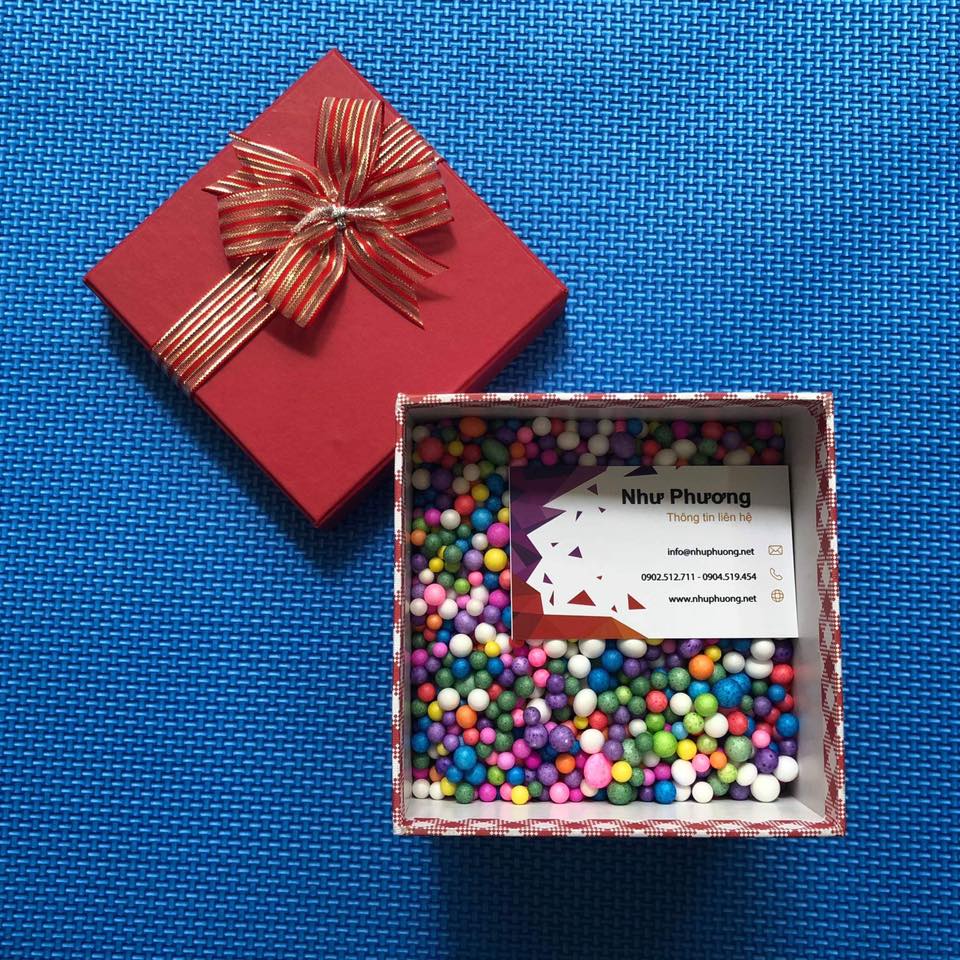 Một trong những điểm nổi bật của hộp quà này chính là hạt mút xốp nhiều màu sắc. Chúng không những trang trí ấn tượng cho hộp quà mà còn tạo ra sự bất ngờ cho người nhận khi mở hộp. Bên cạnh đó, hộp quà còn được thiết kế với nhiều hình dáng thú vị như hình tròn hay hình tim, giúp cho việc tặng quà trở nên thú vị và độc đáo hơn.