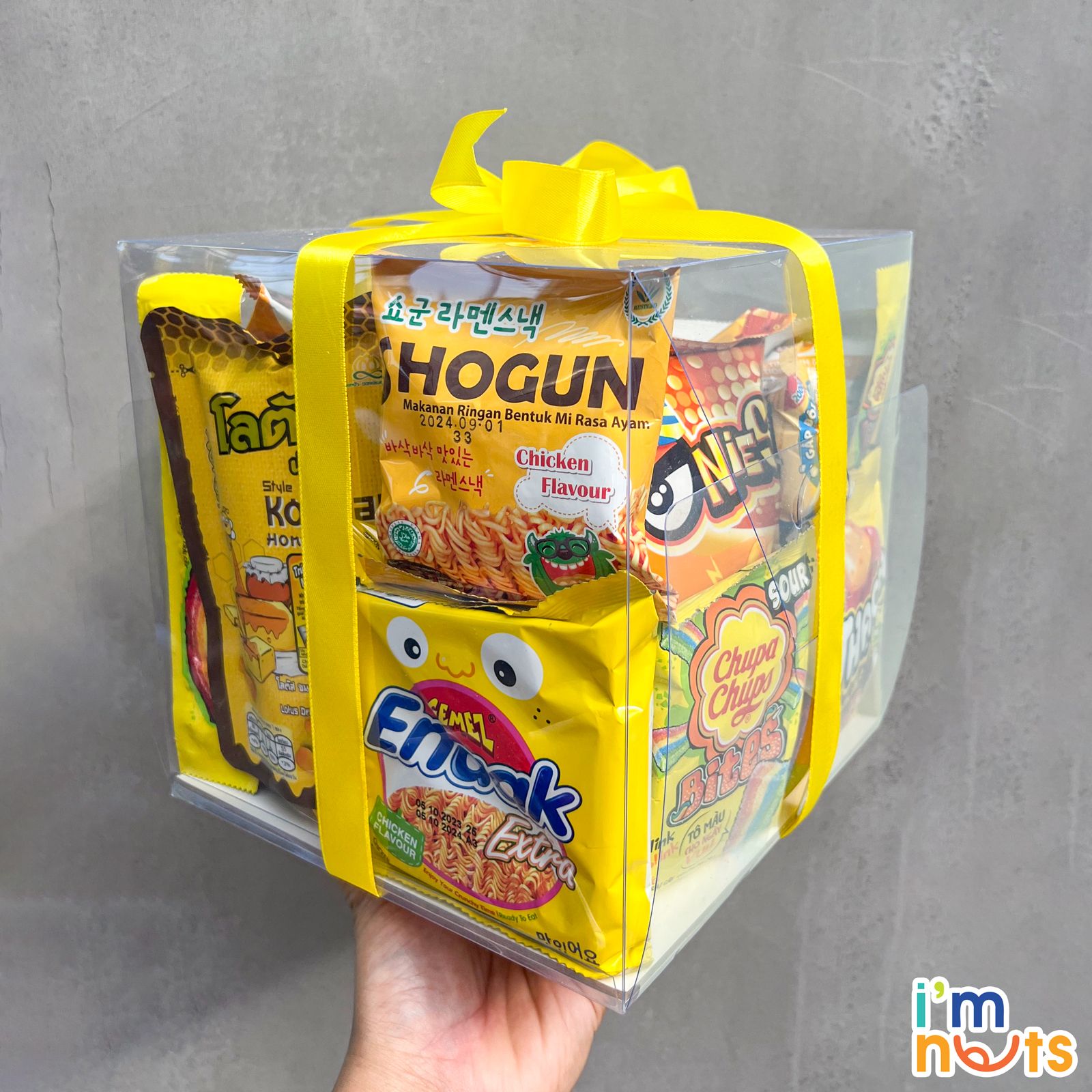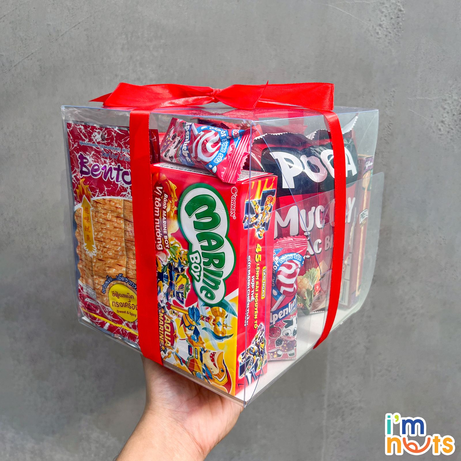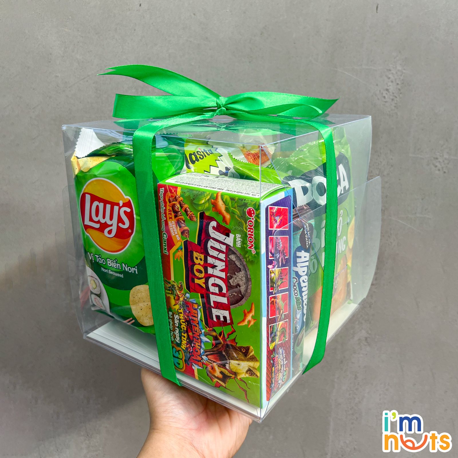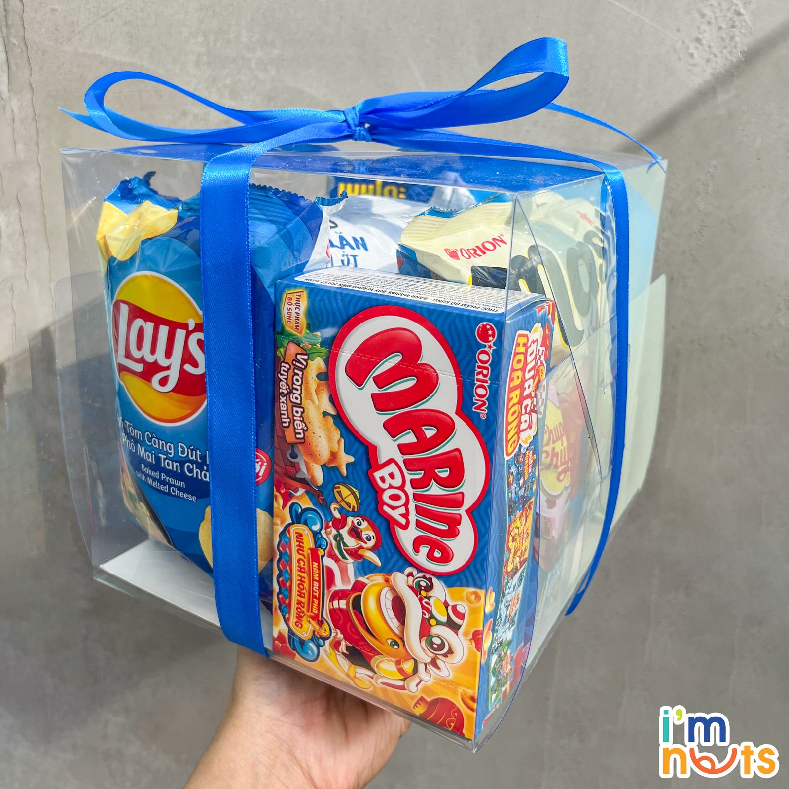 Với sự đa dạng về kiểu dáng và màu sắc, hộp quà bánh kẹo ImNuts chắc chắn sẽ khiến bạn hài lòng. Chiếc hộp mica xinh xắn, kèm dây ruy băng sắc màu, sẽ tạo nên một món quà thật ấn tượng. Bộ sản phẩm gồm một túi xách và nhiều hộp nhỏ giúp bạn thiết kế quà tặng theo ý tưởng của riêng mình.