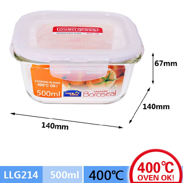 Hộp thủy tinh vuông Lock&Lock LLG214 dung tích 500ml là lựa chọn lý tưởng cho những ai yêu thích sự tiện lợi và an toàn trong việc lưu trữ thực phẩm. Được làm từ chất liệu thủy tinh chịu nhiệt Borosilicate cao cấp, sản phẩm này có khả năng chịu nhiệt lên đến 400 độ C, giúp bạn yên tâm khi sử dụng trong lò vi sóng hay lò nướng.