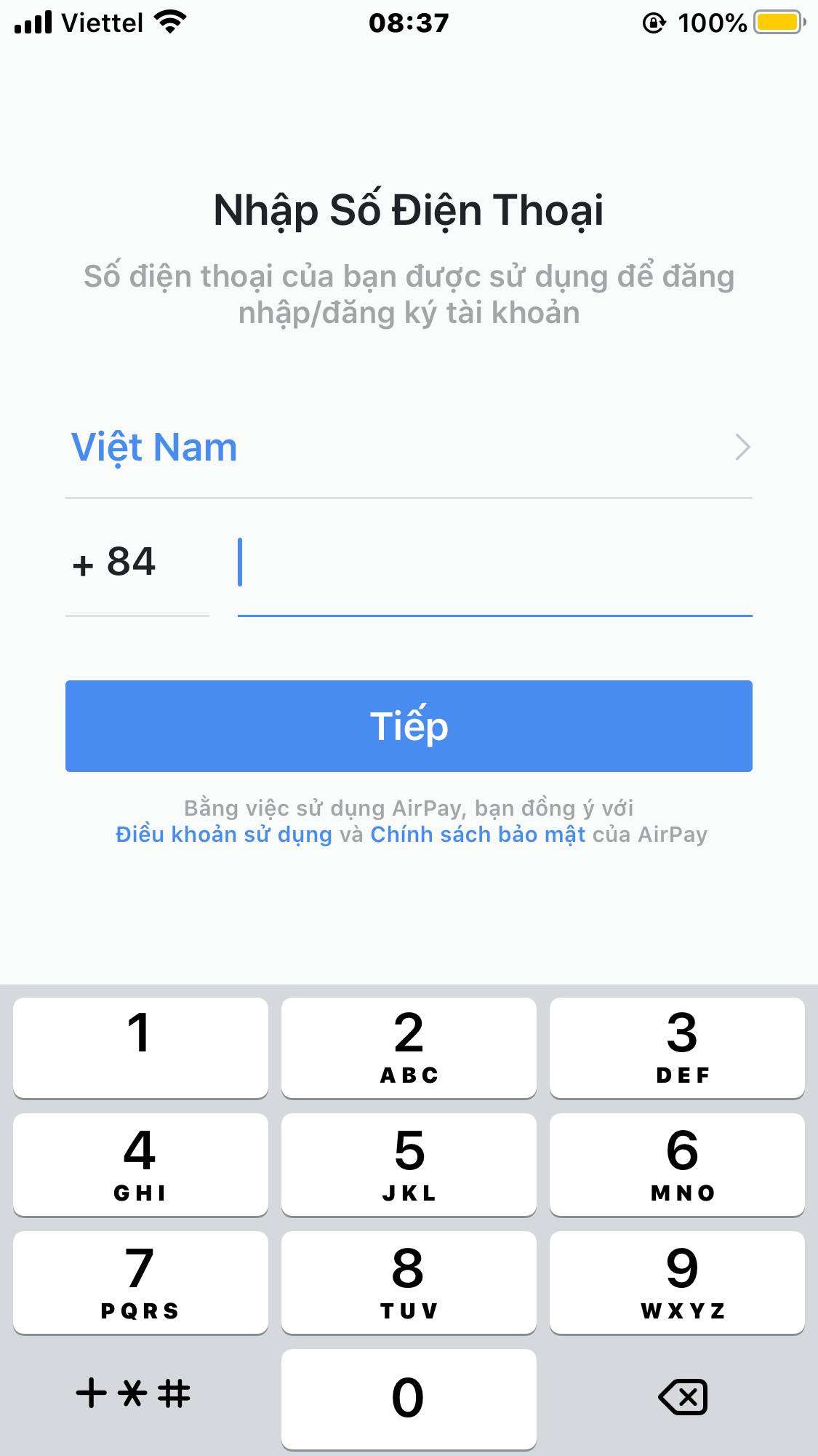 Sau khi cài đặt xong, bạn mở ứng dụng và nhập số điện thoại mà bạn muốn đăng ký. Lưu ý là số điện thoại này nên trùng với số bạn đã đăng ký với ngân hàng để việc liên kết sau này thuận tiện hơn. Tiếp theo, bạn sẽ nhận được một mã xác minh gửi về qua tin nhắn SMS, chỉ cần nhập đúng mã này là hoàn tất đăng ký tài khoản Airpay.