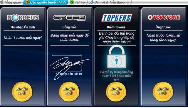 Ngoài việc mua Token bằng tiền thật, bạn cũng có thể kiếm Token miễn phí trong game bằng cách bán cầu thủ, ký hợp đồng với nhà tài trợ hoặc nhận thưởng sau mỗi trận đấu. Nếu muốn nhiều Token hơn, bạn có thể tham gia các offer hoặc sự kiện trong game, nhưng cách này đòi hỏi thời gian và sự kiên nhẫn để học hỏi và thực hiện.