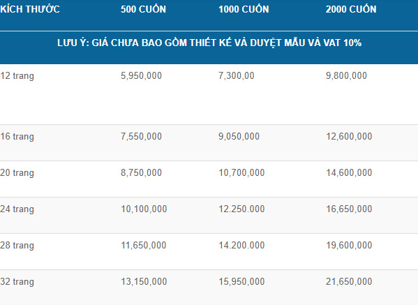 Ngoài ra, cần lưu ý rằng giá in còn phụ thuộc vào các yếu tố khác như kích thước, chất liệu giấy và các yêu cầu riêng biệt. Để có báo giá chính xác nhất, bạn nên kiểm tra với các dịch vụ in ấn và lựa chọn phương án phù hợp với nhu cầu của mình.