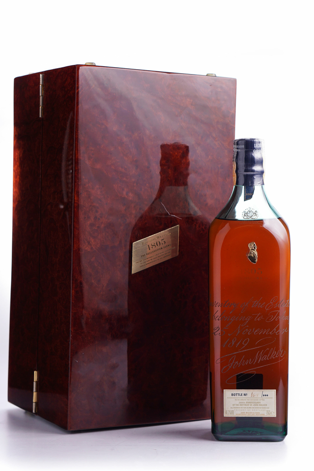 Chai rượu này được sản xuất với quy trình tỉ mỉ từ 9 loại whisky, được ủ từ 45 đến 70 năm, và được trình bày trong hộp gỗ theo phong cách Victorian sang trọng. Tuy Johnnie Walker Blue Label 1805 không được bán ra trên thị trường mà chỉ để trưng bày, nó vẫn khiến những ai yêu thích whisky cảm thấy háo hức và ngưỡng mộ.