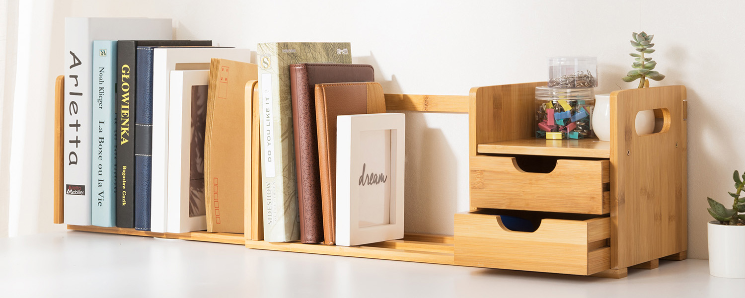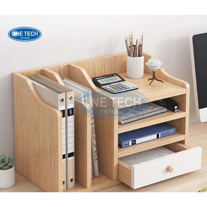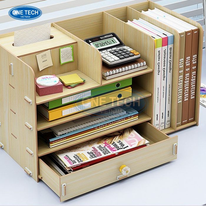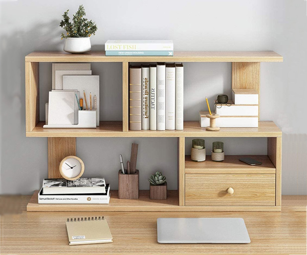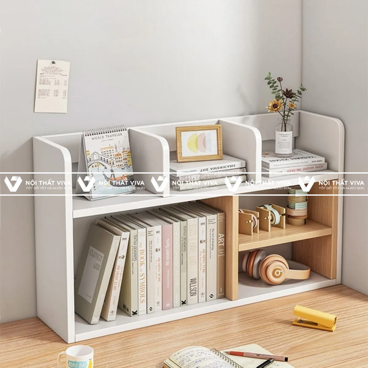 Kệ sách để bàn gỗ có thiết kế đơn giản nhưng tiện lợi, giúp bạn tổ chức sách vở và các đồ dùng văn phòng một cách gọn gàng. Những mẫu kệ nhỏ gọn, có thể di chuyển linh hoạt, cho phép bạn tự do bố trí tại nhiều vị trí trên bàn làm việc, từ góc bàn cho đến giữa bàn.