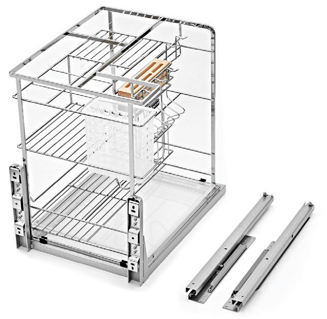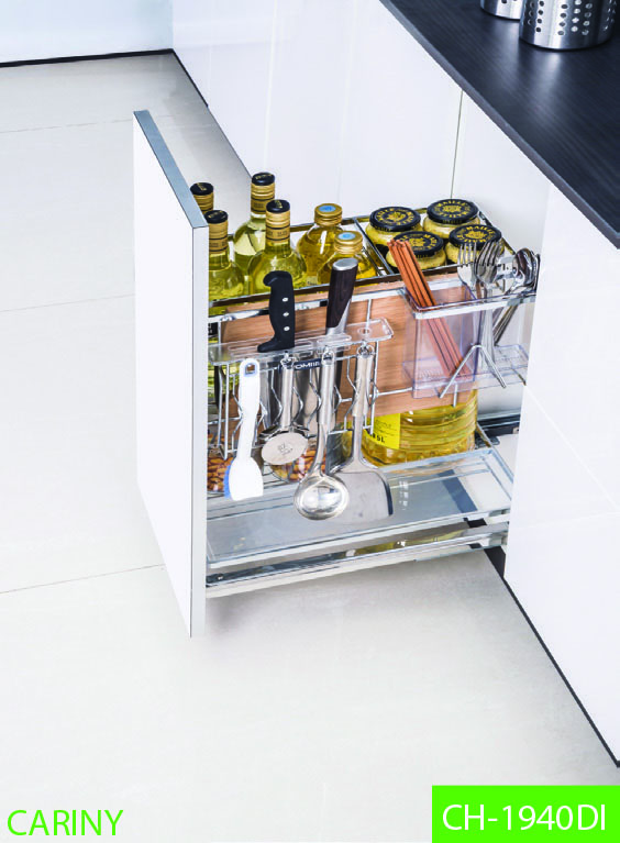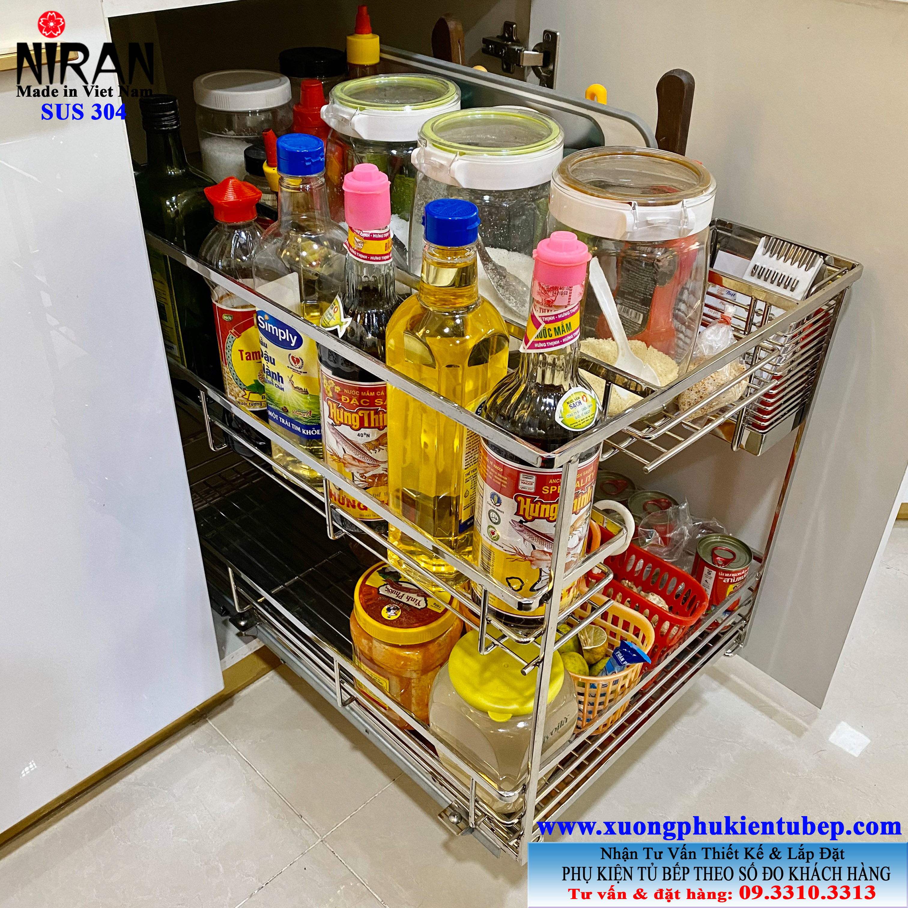 Kệ gia vị đa năng là một trong những vật dụng không thể thiếu trong mọi gian bếp, giúp sắp xếp và bảo quản gia vị một cách khoa học và tiện lợi. Với kích thước tiêu chuẩn khoảng 400mm, nó hoàn hảo để lắp đặt cho những khoang tủ có kích thước thông thủy là W360 * D475 * H455 mm.