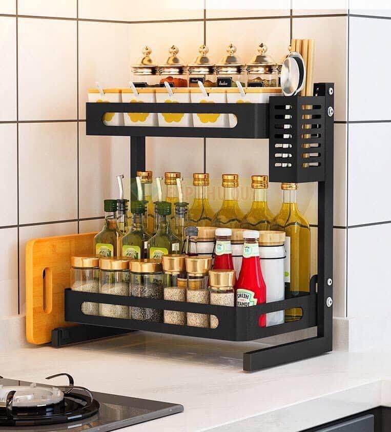 Ngoài chức năng chính là đựng gia vị, những chiếc kệ này còn rất đa năng. Bạn có thể dùng để cất giữ trái cây, mỹ phẩm hay các đồ dùng khác trong nhà. Sự linh hoạt trong thiết kế khiến kệ gia vị trở thành một món đồ nội thất không chỉ giúp căn bếp ngăn nắp mà còn góp phần tăng tính thẩm mỹ cho không gian sống.