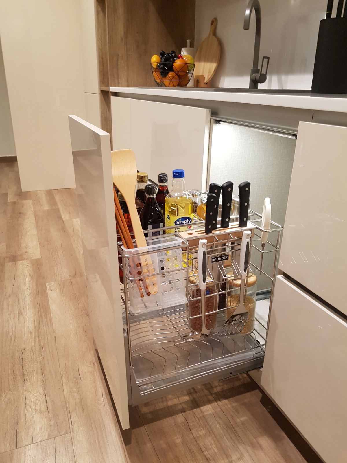 Một trong những sản phẩm nổi bật là kệ gia vị có ray âm 250mm, giá chỉ 2.000.000 VNĐ, thay vì 2.363.000 VNĐ. Với thiết kế thông minh, kệ này sẽ giúp bạn tiết kiệm không gian và giữ mọi thứ gọn gàng hơn. Bên cạnh đó, kệ gia vị dao thớt 350mm cũng là điểm nhấn với giá cực hấp dẫn 2.680.000 VNĐ, giúp tối ưu hóa tủ bếp của bạn.