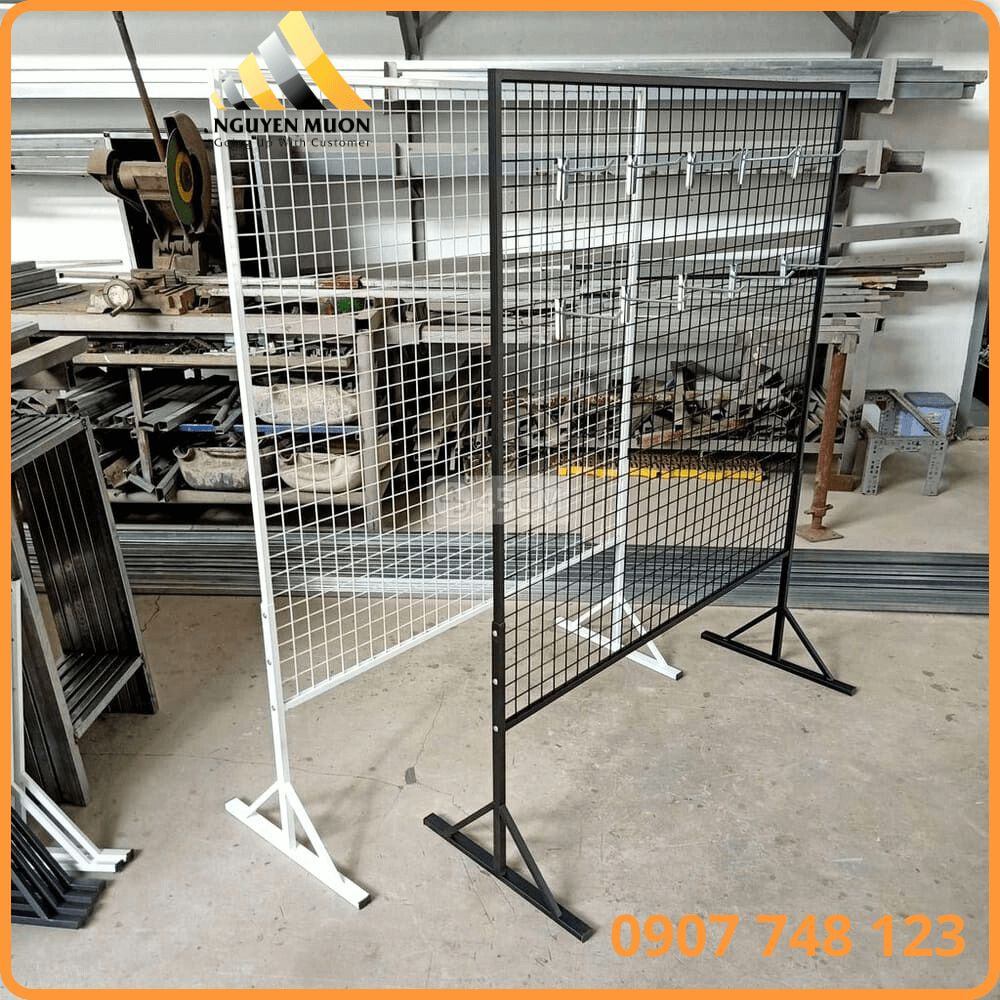 Một trong những điểm nổi bật của kệ lưới là dễ lắp đặt nhờ vào hệ thống chốt gài, cho phép bạn di chuyển kệ dễ dàng và tiết kiệm không gian, nhất là khi cần dựa sát vào tường. Kệ còn có hai loại: loại gắn tường và loại có chân với bánh xe, rất tiện lợi cho việc thay đổi vị trí trưng bày.