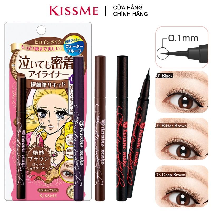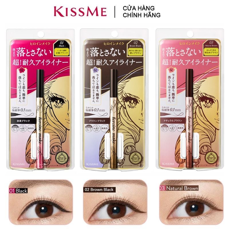 Kẻ mắt Kiss Me, đặc biệt là dòng Heroine Make Prime Liquid Eyeliner, được đánh giá rất cao về chất lượng. Nếu bạn đang tìm kiếm một sản phẩm giúp tạo nét kẻ mắt sắc nét và bám lâu trôi, thì đây chính là lựa chọn không thể bỏ qua. Với thiết kế đầu cọ mảnh mai, bạn có thể dễ dàng vẽ viền mắt một cách chính xác, ngay cả khi là người mới tập kẻ.