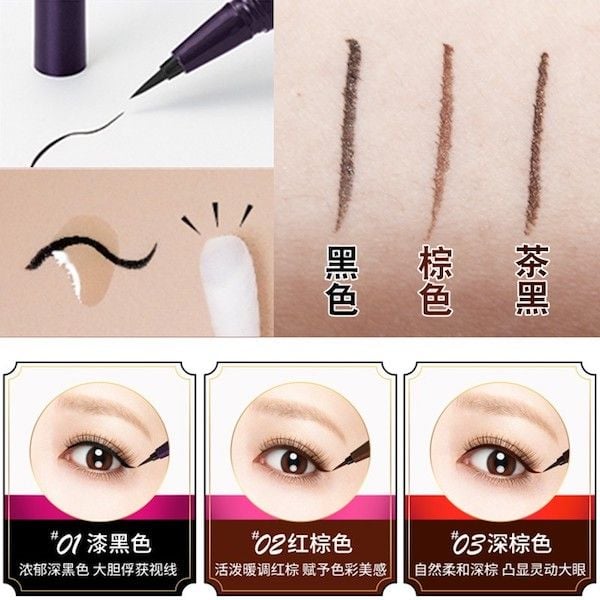 Một điểm nổi bật của bút kẻ mắt này là công nghệ kiểm soát dòng chất lỏng, giúp bạn vẽ nên những đường kẻ đậm đặc và tinh tế mà không lo bị mờ. Đầu bút chỉ 0.1mm, cực mảnh như sợi tơ, khiến cho việc kẻ mắt trở nên dễ dàng, phù hợp cho cả những người mới bắt đầu. Đặc biệt, mực kẻ ra đều, bám lâu trên da và có khả năng chống nước đáng kinh ngạc, giữ màu lên đến 24h.