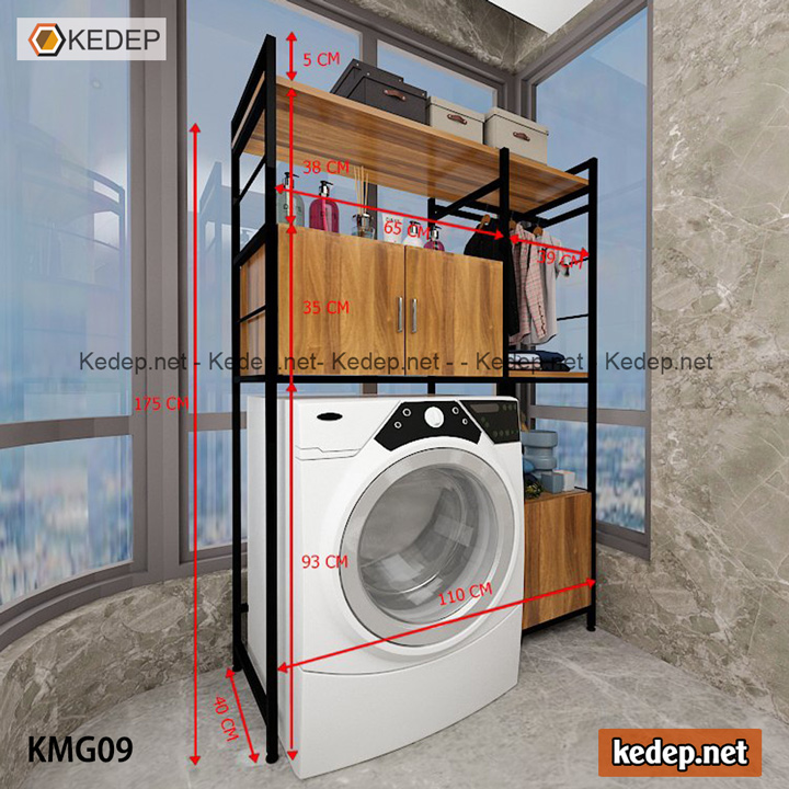 Đặc biệt, kệ này phù hợp cho nhiều kích thước máy giặt, mang đến sự tiện lợi tối đa khi sử dụng. Kích thước phủ bì của kệ khá linh hoạt với chiều cao 150 cm, chiều sâu 36 cm và chiều rộng 70 cm, kết hợp với khung sắt hộp dày dạn. Bạn có thể thoải mái lựa chọn kích thước mà không phải lo lắng về độ tương thích.