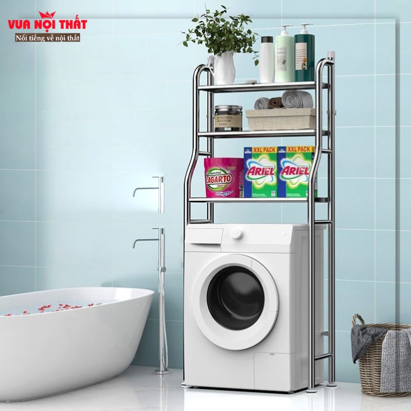 Ngoài ra, kệ máy giặt còn giúp giảm rung lắc trong quá trình hoạt động, đồng thời tạo điều kiện vệ sinh dễ dàng ở khu vực phía dưới. Đặc biệt, các loại kệ 2 tầng hay 3 tầng giúp bạn tối ưu không gian lưu trữ, giữ cho mọi thứ gọn gàng và ngăn nắp hơn.