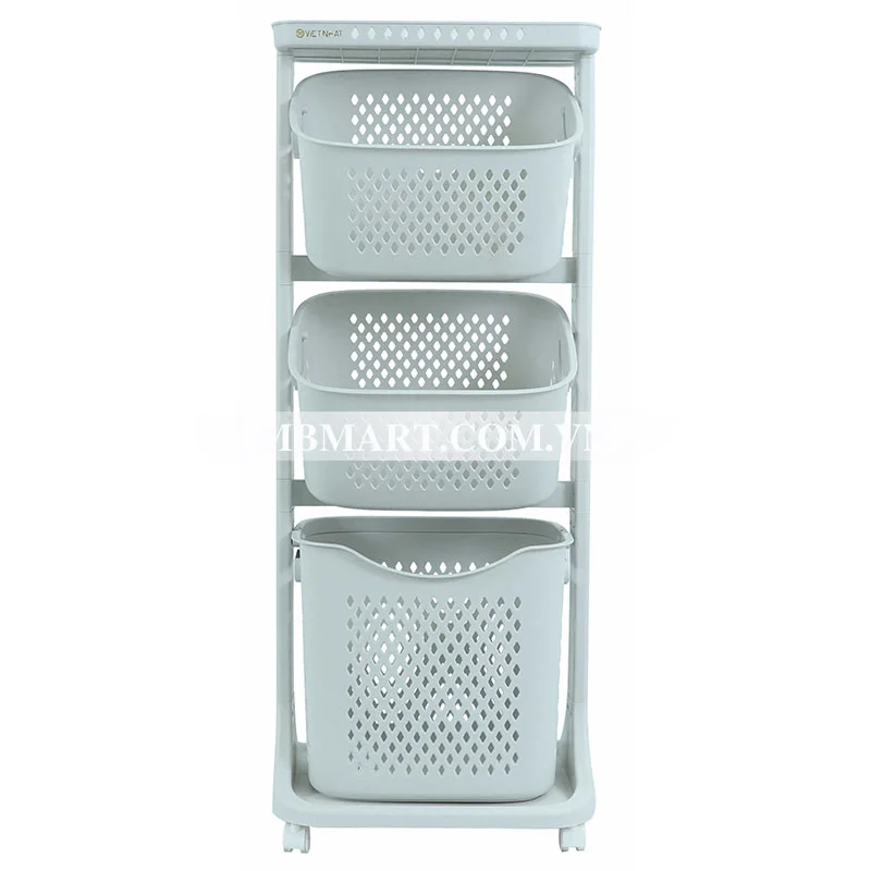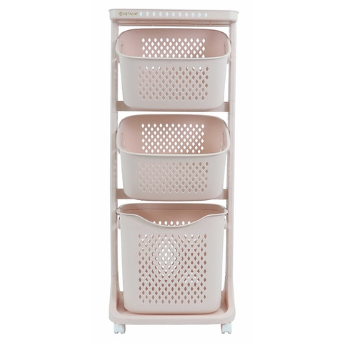 Kệ nhựa 3 tầng không chỉ đơn thuần là nơi lưu trữ đồ dùng mà còn có thể sử dụng như giỏ phân loại đồ dơ trước khi giặt, hoặc làm nơi để khăn tắm và dầu gội. Sản phẩm còn được trang bị bánh xe linh hoạt, cho phép di chuyển dễ dàng đến bất kỳ ngóc ngách nào trong ngôi nhà.