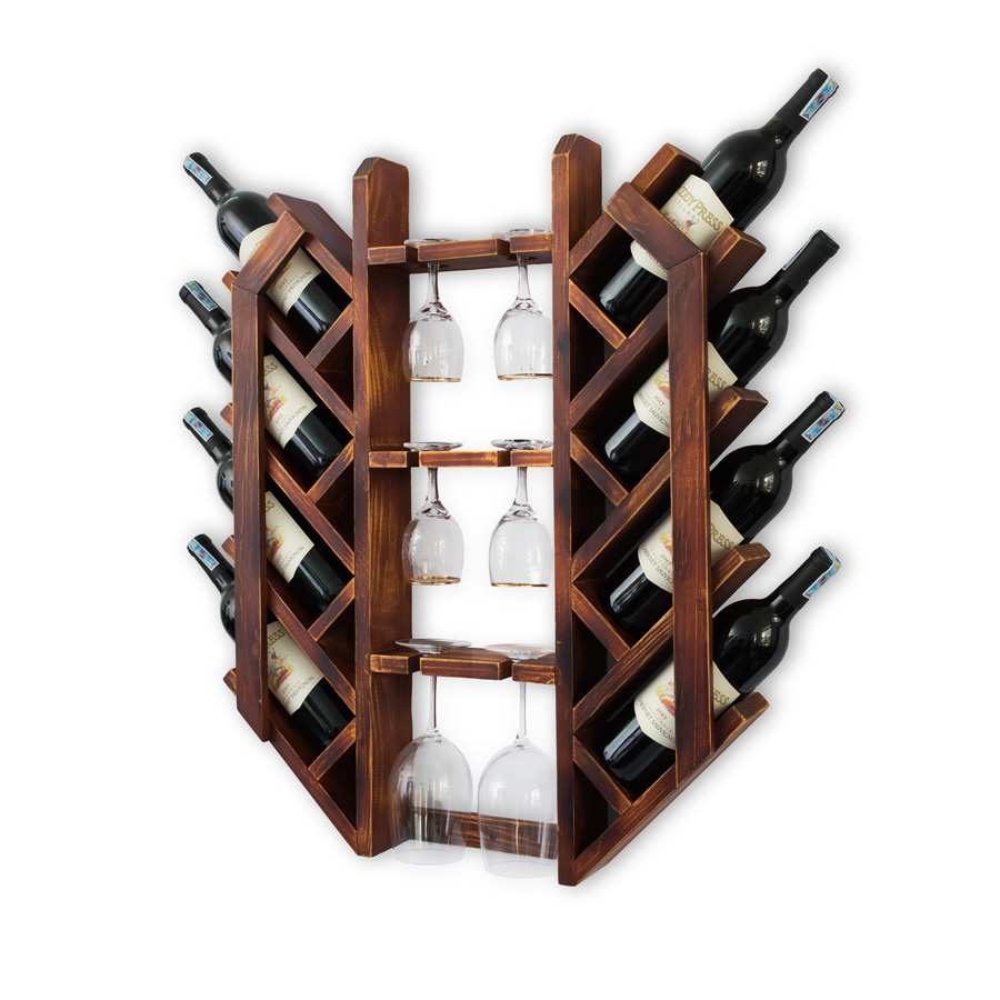Kệ thiết kế nhỏ gọn này có thể treo trên tường, giúp tiết kiệm diện tích mà vẫn đủ chỗ chứa cho ba chai rượu cùng một số phụ kiện hữu ích như bộ khui rượu hay giá treo ly. Không chỉ phục vụ nhu cầu lưu trữ, kệ còn làm nổi bật vẻ đẹp của những chai rượu quí giá.