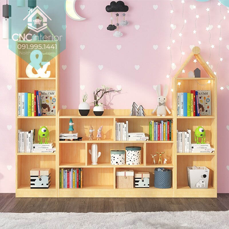 Cuối cùng, một chiếc kệ sách đẹp mắt không chỉ giúp tiết kiệm diện tích mà còn làm cho phòng bé trở nên sinh động hơn. Hãy chọn mẫu phối hợp nhịp nhàng với bàn học, giường tầng và các món đồ nội thất khác, giúp không gian trở nên thú vị và sáng tạo cho giờ đọc sách của trẻ.