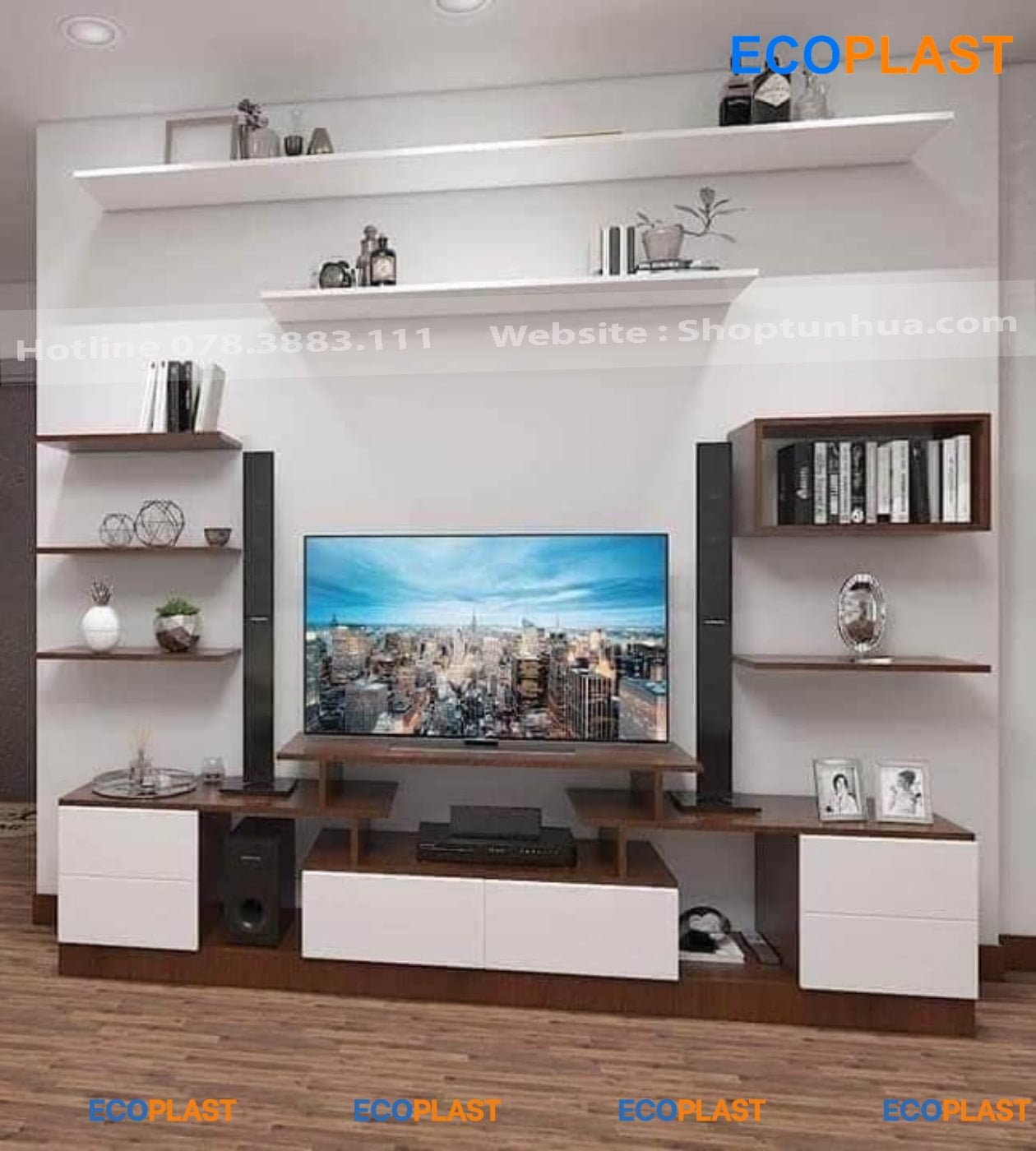 Ngoài ra, thiết kế thông minh với nhiều ngăn chứa và rãnh đi dây âm tường của kệ không chỉ giúp không gian gọn gàng, mà còn mang lại tiện ích tối đa cho người dùng. Nếu bạn đang cần tìm một mẫu kệ tivi đẹp và bền, đừng quên tham khảo các mẫu kệ nhựa Ecoplast tại Tủ nhựa Kim Nhật nhé!