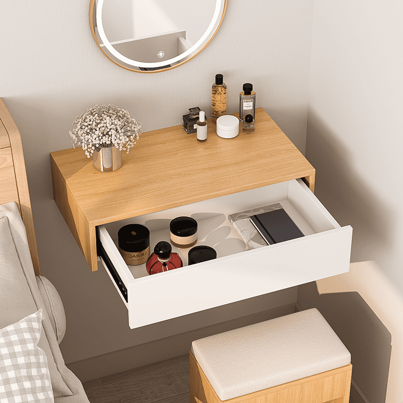 Điểm nổi bật của các mẫu bàn trang điểm treo tường là khả năng tiết kiệm diện tích. Nhờ vào thiết kế treo tường, bạn có thể tận dụng tối đa không gian sàn, giúp phòng trở nên thoáng đãng hơn. Hơn nữa, nhiều mẫu còn được trang bị ngăn kéo, giúp bạn dễ dàng sắp xếp các sản phẩm làm đẹp một cách ngăn nắp.