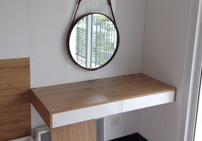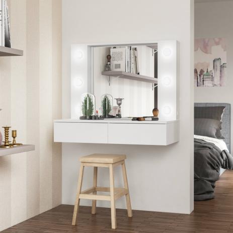 Điểm nổi bật của những bộ bàn trang điểm treo tường này không chỉ là thiết kế hiện đại, mà còn tiết kiệm diện tích tối đa. Một mẫu bàn trang điểm gỗ GAPI sẽ giúp biến góc phòng ngủ của bạn thành nơi thư giãn và làm đẹp hoàn hảo. Đặc biệt, một số mẫu còn được trang bị đèn LED để bạn trang điểm trong điều kiện ánh sáng tốt nhất.