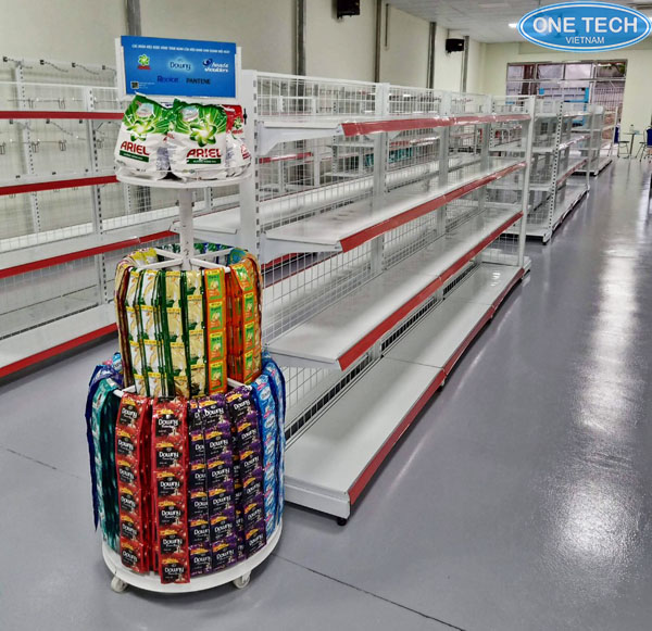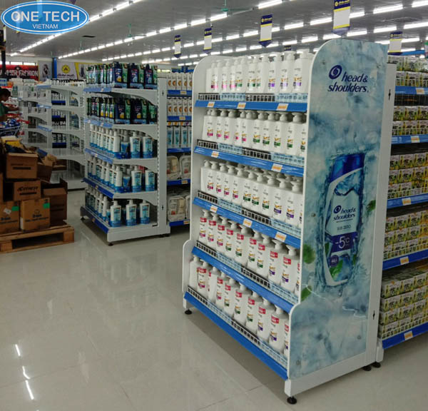 Sản phẩm không chỉ giúp tiết kiệm không gian mà còn giúp sắp xếp các sản phẩm một cách gọn gàng. Thiết kế thông minh này không chỉ phù hợp cho không gian nhà tắm mà còn cho các cửa hàng, siêu thị. Những chai dầu gội sẽ được treo trực tiếp lên các tầng của kệ, tạo nên vẻ đẹp mắt và dễ dàng cho khách hàng khi lựa chọn.
