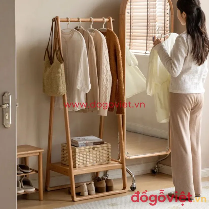 Cuối cùng, hãy lắp các phụ kiện như thanh gỗ hoặc móc treo để hoàn thiện sản phẩm. Với kết cấu vững chắc, kệ treo quần áo sẽ không chỉ hỗ trợ bạn trong việc tổ chức trang phục, mà còn biến căn phòng của bạn thành một không gian như một cửa hàng thời trang thu nhỏ, thật tiện lợi và phong cách.