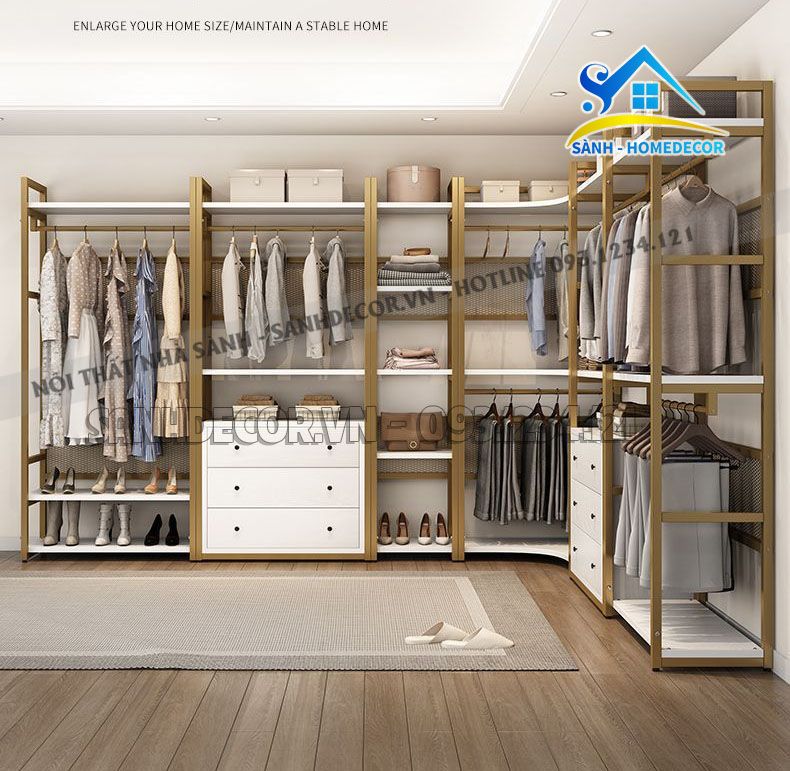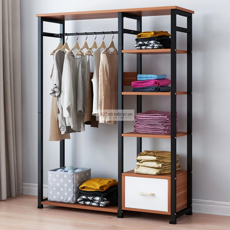 Khung sắt sơn tĩnh điện chống gỉ không chỉ tăng độ bền cho sản phẩm mà còn mang đến vẻ đẹp hiện đại, thanh lịch. Thiết kế thông minh với nhiều ngăn và móc treo giúp bạn dễ dàng sắp xếp quần áo, bảo quản chúng luôn trong tình trạng tốt nhất.