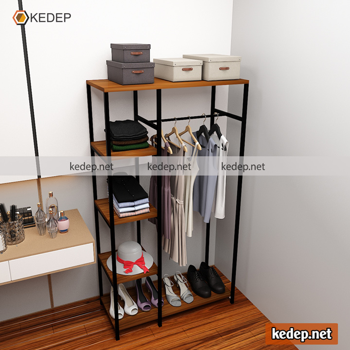 Đây cũng là sản phẩm rất hữu ích với khả năng chịu lực lên đến 20kg mỗi tầng. Bạn có thể thoải mái treo quần áo và trưng bày các phụ kiện yêu thích. Bên cạnh đó, thiết kế phân đôi không gian giúp bạn dễ dàng sắp xếp quần áo và đồ dùng cá nhân một cách ngăn nắp. Hãy tham khảo ngay những mẫu mới nhất, chắc chắn bạn sẽ tìm được một chiếc kệ phù hợp với phong cách của mình!
