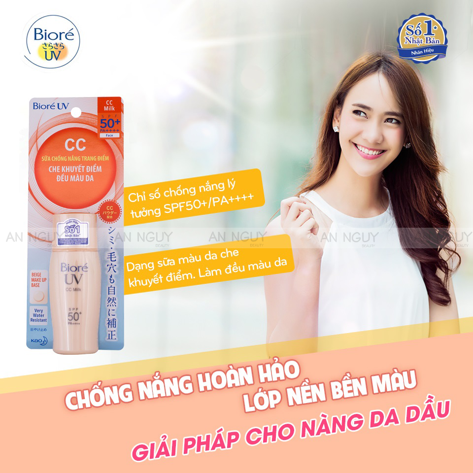 Kem chống nắng Biore UV CC Milk là một sản phẩm đáng chú ý trong danh sách kem chống nắng hiện nay. Với chỉ số SPF 50+/PA++++, kem không chỉ bảo vệ da khỏi tia UV mà còn giữ cho làn da bạn mịn màng và đều màu. Đặc biệt, sản phẩm này có khả năng làm lớp lót trang điểm, giúp che phủ nhẹ khuyết điểm, mang lại vẻ tự nhiên cho làn da.