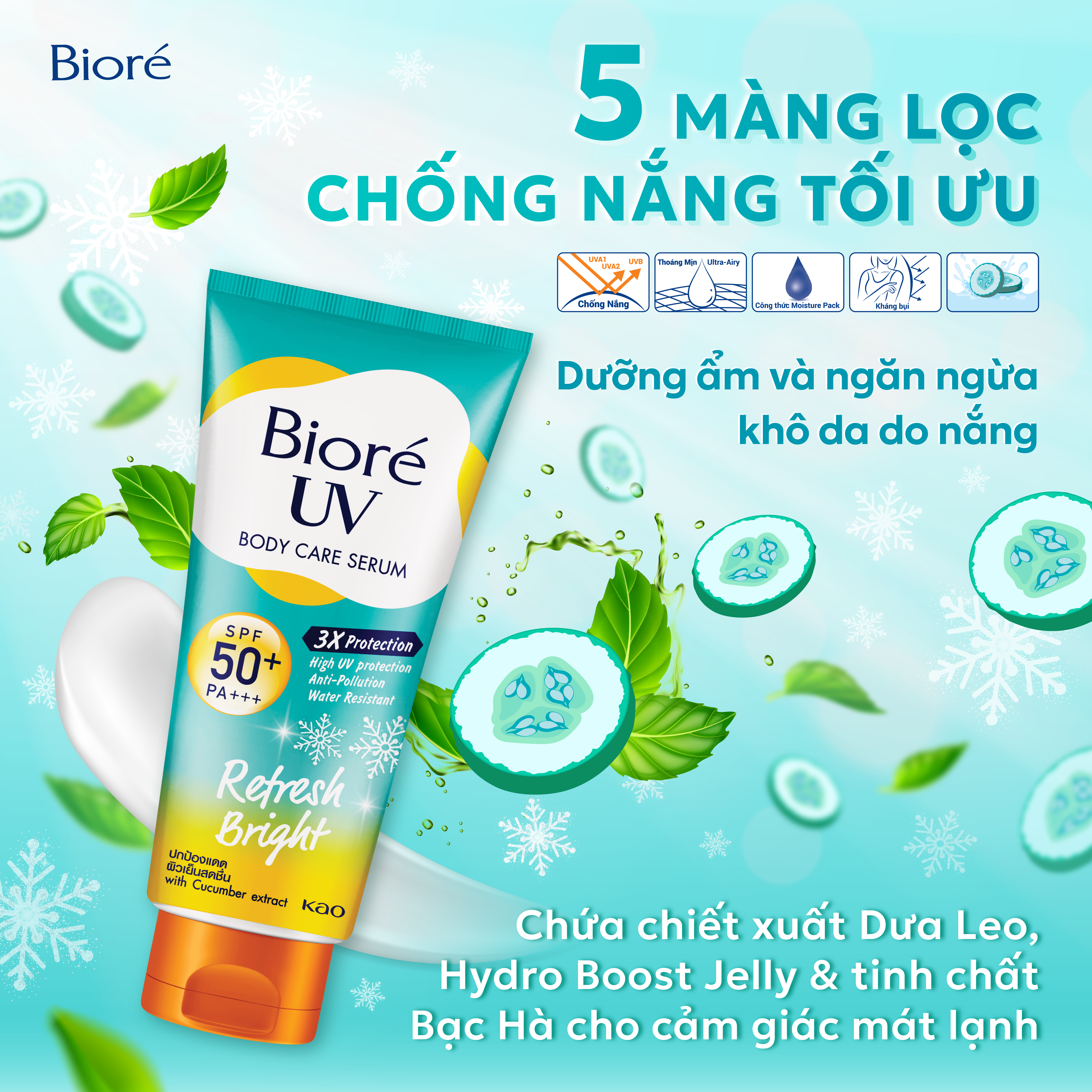 Với chỉ số chống nắng SPF 50+/PA+++, Kem Chống Nắng Biore Mát Lạnh chắc chắn sẽ là người bạn đồng hành lý tưởng cho làn da bạn. Hãy trải nghiệm và cảm nhận ngay sự tươi mát và bảo vệ từ sản phẩm này!