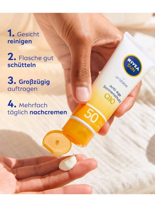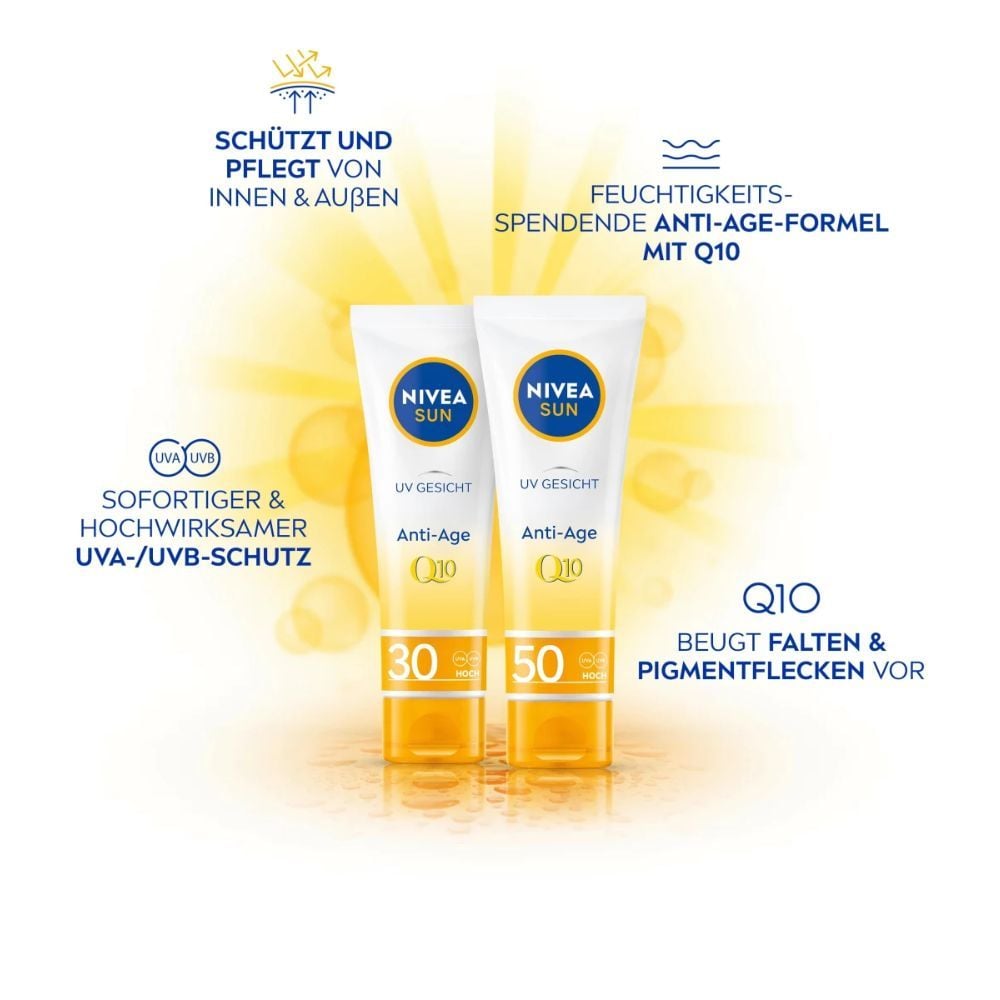 Kem chống nắng NIVEA SUN Schutz & Pflege LSF 50+ là lựa chọn tuyệt vời cho việc bảo vệ da mặt trước tác động của ánh nắng. Với chỉ số SPF 50, sản phẩm này giúp bạn chống lại tia UVA, UVB và ánh sáng xanh, giảm nguy cơ cháy nắng, lão hóa da sớm và các vấn đề sắc tố.