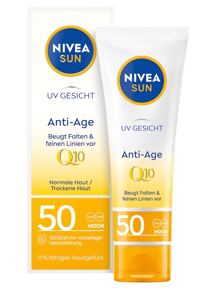Nếu bạn quan tâm đến việc chăm sóc da và chống lão hóa, kem chống nắng NIVEA SUN Anti-Age SPF 50 có chứa Q10 sẽ là sự lựa chọn hoàn hảo. Nó không chỉ bảo vệ da mà còn giúp ngăn chặn các dấu hiệu lão hóa do ánh sáng xanh gây ra.