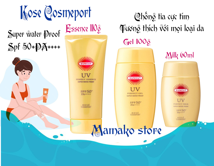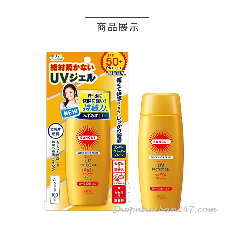 Kem chống nắng Kose Suncut Gel SPF50+ PA++++ là sự lựa chọn lý tưởng cho những ai muốn bảo vệ làn da khỏi tác hại của tia UV. Với chỉ số chống nắng cao SPF50+ và PA++++, sản phẩm này không chỉ có khả năng chống thấm nước, mà còn ngăn mồ hôi và dầu thừa, giúp làn da khô thoáng suốt cả ngày.