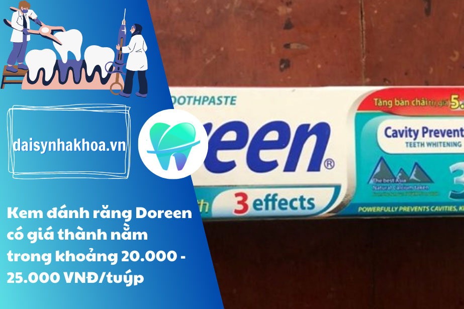 Kem đánh răng Doreen là một lựa chọn đáng thử cho những ai đang tìm kiếm giải pháp làm trắng răng và bảo vệ sức khỏe răng miệng. Với giá khoảng 19.000 VNĐ cho 90 gram và 25.000 VNĐ cho 200 gram, sản phẩm mang đến nhiều công dụng nổi bật. Đặc biệt, Doreen cam kết bạn sẽ thấy được hiệu quả làm trắng chỉ sau 5 ngày sử dụng.