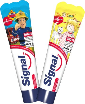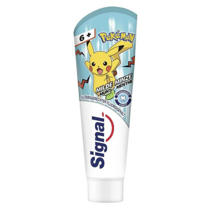 Bên cạnh đó, sản phẩm còn có nhiều loại dành cho trẻ em, như kem đánh răng cho bé dưới 6 tuổi với giá chỉ 90.000đ. Đây là sản phẩm an toàn và dễ nuốt, giúp bảo vệ răng miệng từ chiếc răng vĩnh viễn đầu tiên. Đối với trẻ trên 6 tuổi, bạn có thể chọn kem đánh răng Signal chứa 1450ppm natri florua.