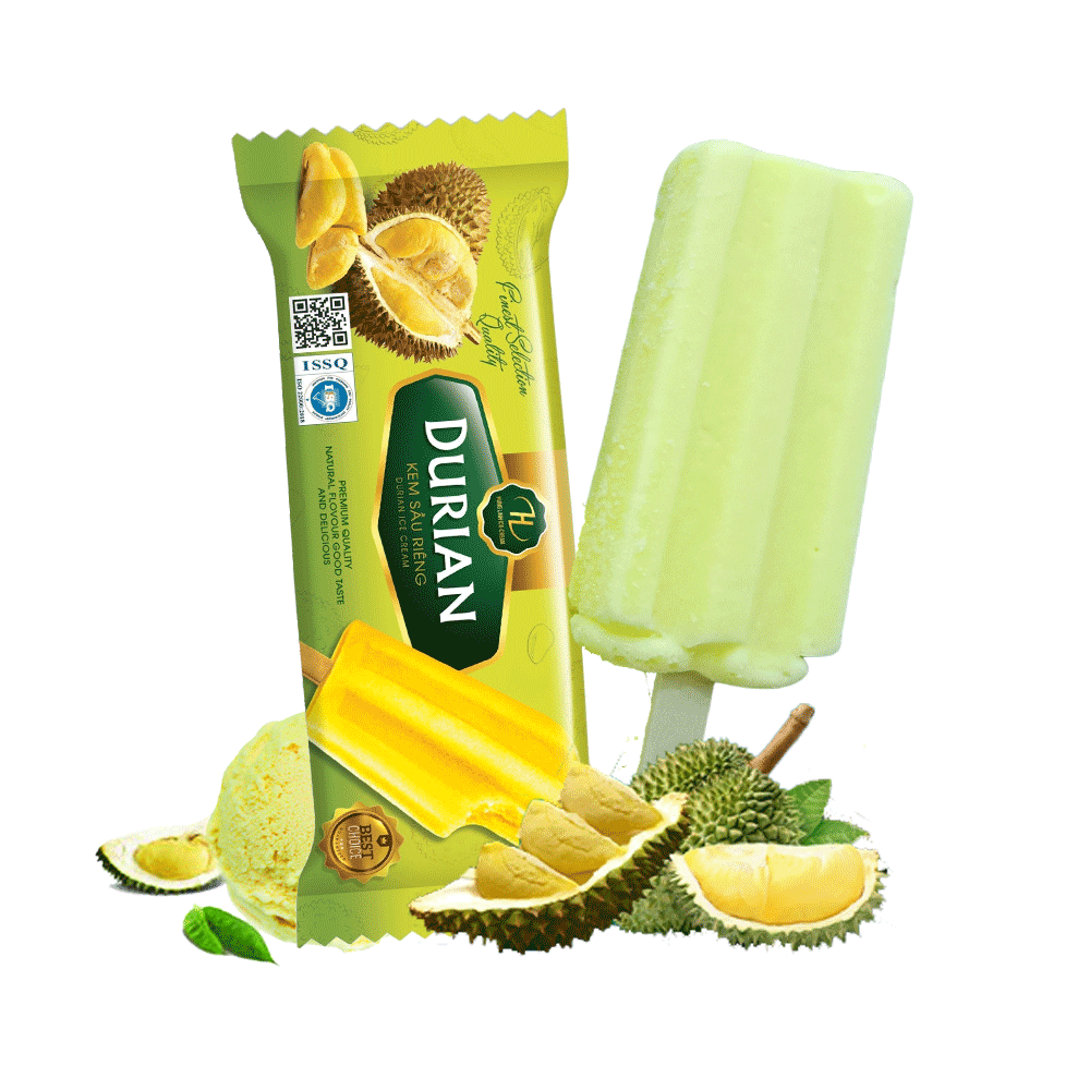 Kem sầu riêng ướp lạnh ở Hà Nội đã trở thành một trong những món tráng miệng hấp dẫn mà nhiều người yêu thích. Chắc hẳn không ai có thể cưỡng lại hương vị đậm đà, béo ngậy từ sầu riêng chín cây kết hợp với lớp kem sữa mịn màng, lạnh sâu của các thương hiệu nổi tiếng như Kem que hương sầu riêng TH hay Kem Sầu riêng Bellany.