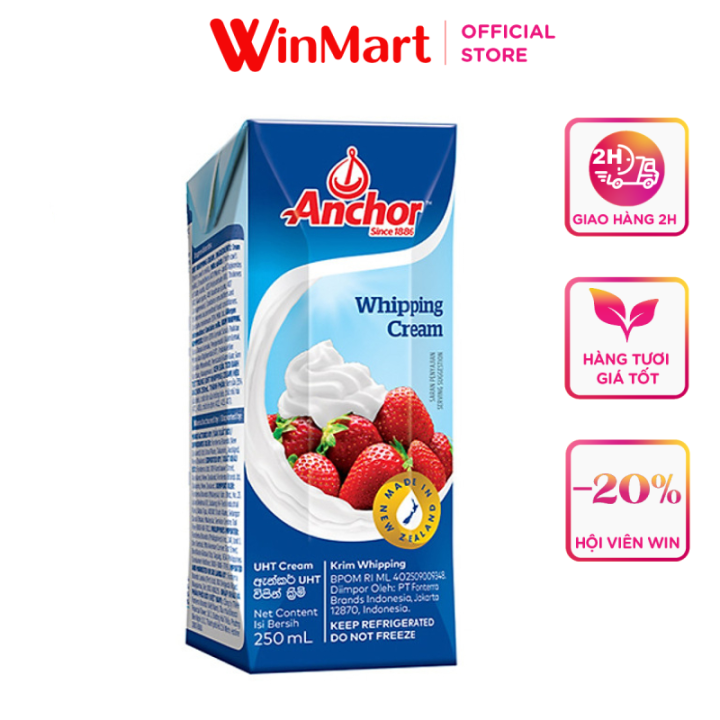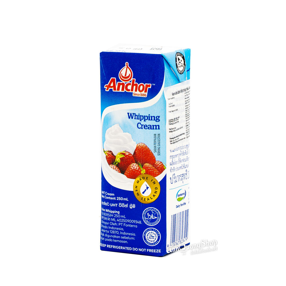Ngoài Elle & Vire, kem Anchor cũng là một lựa chọn tuyệt vời cho những ai yêu thích whipping cream. Với nguồn sữa tươi chất lượng cao, Anchor mang đến vị béo ngậy, hoàn hảo cho việc trang trí bánh kem hay làm các lớp kem trong món tráng miệng.