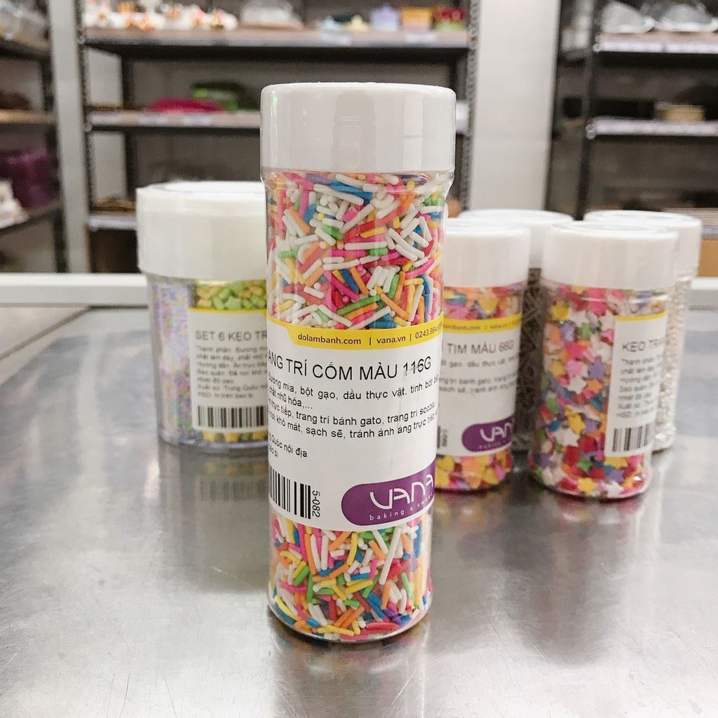 Kẹo cốm trang trí bánh ngọt là một yếu tố không thể thiếu giúp những chiếc bánh của bạn trở nên sống động và hấp dẫn hơn. Với thiết kế 7 màu bắt mắt, những viên kẹo nhỏ này không chỉ mang lại vẻ đẹp mà còn thêm phần thú vị cho món bánh. Mỗi gói kẹo cốm 100g có giá chỉ 24.000 VNĐ, thật dễ chịu cho túi tiền!