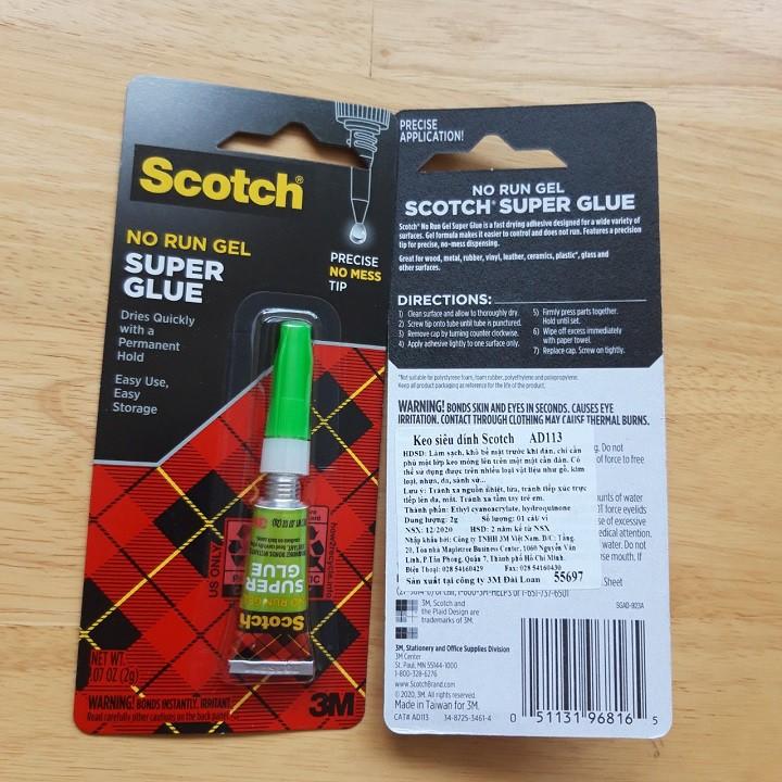 Đặc biệt, với kết cấu NO RUN GEL, keo không dễ dàng chảy và sền sệt một chút, điều này giúp việc dán trở nên dễ dàng hơn. Với keo 3M Scotch Super Glue AD113, bạn có thể yên tâm rằng các dự án của mình sẽ được hoàn thành hoàn hảo và chắc chắn.