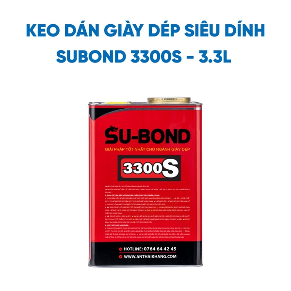 Trong các dòng keo dán giày dép hiện nay, keo dán Su-Bond 3300S nổi bật nhờ độ bám dính chắc chắn và bền bỉ. Cùng với keo SB-505, bạn sẽ có sản phẩm hỗ trợ hoàn hảo cho việc sửa chữa giày dép bị bung hoặc sứt. Với keo dán cao su và tính năng chống thấm nước, bạn có thể hoàn toàn yên tâm khi sử dụng sản phẩm này.