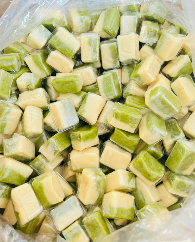 Kẹo dừa nổi bật với hương vị béo ngậy, ngọt thanh và đặc trưng. Khi ăn, bạn sẽ cảm nhận sự hòa quyện giữa vị ngọt nhẹ và sự béo của nước cốt dừa, tạo nên những viên kẹo dẻo dai, hấp dẫn. Đặc biệt, kẹo kết hợp với sầu riêng mang đến vị ngọt đậm đà và hương thơm khác lạ.
