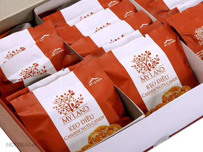 Sản phẩm được đóng gói tiện lợi trong hộp 400g với 18 gói nhỏ, dễ dàng mang theo bất cứ đâu. Với giá cả phải chăng, kẹo hạt điều My Land là sự lựa chọn hoàn hảo cho những ai yêu thích đồ ngọt nhưng vẫn muốn giữ gìn sức khỏe. Hãy thử ngay hôm nay và cảm nhận sự khác biệt!