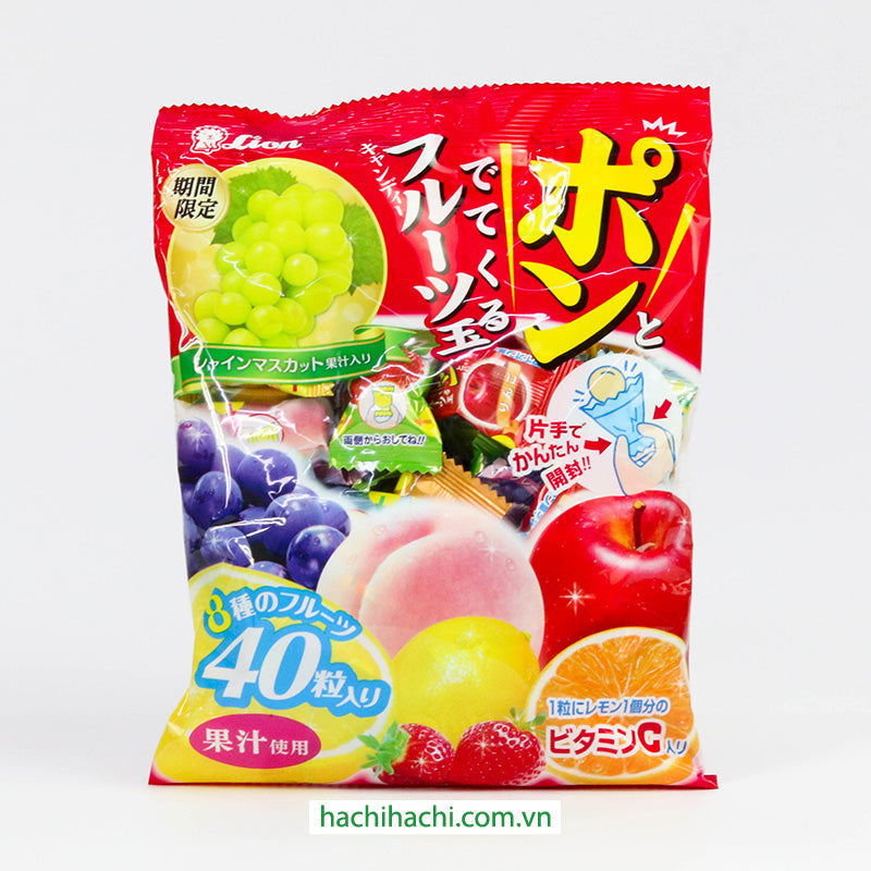 Kẹo Trái Cây Lion Nhật Bản gây ấn tượng với hương vị phong phú như táo, dâu, nho và chanh. Được làm từ nước ép trái cây tươi ngon, những viên kẹo này không chỉ ngon miệng mà còn mang lại cảm giác tươi mát, giúp bạn giải nhiệt trong những ngày hè oi ả.
