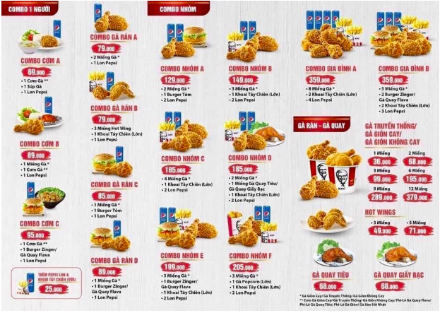Bạn có thể tha hồ lựa chọn giữa gà truyền thống, gà cay hay gà quay, phù hợp với khẩu vị của mình. Đặc biệt, chương trình khuyến mãi COMBO TRƯA đã trở lại với mức giá chỉ 39K, một bữa ăn thịnh soạn mà không lo về giá.